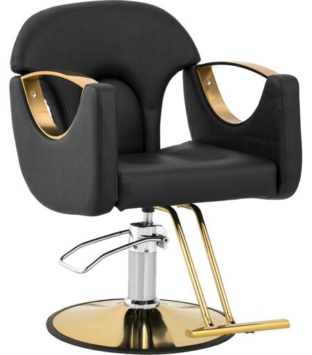 Create a comfortable space for your clientele with the Barton Black hairdressing chair and add a stylish touch to your salon. The discreet design in black blends into any environment. Ensure maximum comfort for you and your guests with the salon chair with footrest and padded backrest – perfect for your hairdressing, tattoo, or beauty studio. The frame of the salon chair is made of robust and elegant stainless steel. The sturdy construction safely bears a load of 180 kg and gives the chair stability and high durability. For extra stability, the hairdresser chair uses a large stand with a diameter of 55 cm provides additional stability. The smooth stainless steel surfaces emphasise the stylish design. Your clients will be extremely comfortable on the ergonomic hairdresser's chair. This is ensured by the use of high armrests and top-quality foam upholstery. The durable imitation leather cover is easy to clean. Beyond that, the cover excels at repelling dust and water. The hydraulic pump lets you easily adjust the height of the hairdresser's chair between 53 - 64 cm. In addition, you can effortlessly rotate the chair to the position from which you work best. This way, you can always achieve an optimal working position in just a few easy steps, so that you don't get tired even on long days. A footrest provides additional comfort while sitting. ...