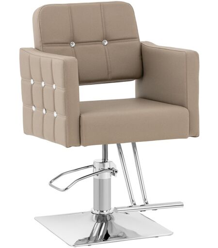 Create a comfortable space for your clientele with the Cottam hairdressing chair and add a stylish touch to your salon. The discreet design in light grey blends into any environment. Ensure maximum comfort for you and your guests with the salon chair with footrest and padded backrest – perfect for your hairdressing, tattoo, or beauty studio. The frame of the salon chair is made of robust and elegant stainless steel. The sturdy construction safely bears a load of 150 kg and gives the chair stability and high durability. The large base with a surface area of 50 x 50 cm provides additional stability. The smooth stainless steel surfaces emphasise the stylish design. Your clients will be extremely comfortable on the ergonomic barber's chair. This is ensured by the use of high armrests and top-quality foam upholstery. It is soft and retains its shape at the same time. The durable imitation leather cover is easy to clean. Beyond that, the cover excels at repelling dust and water. You can easily adjust the seat height of the styling chair between 49 - 63 cm using a hydraulic pump. In addition, you can effortlessly rotate the chair to the position from which you work best, and then lock it in place. This way, you can always achieve an optimal working position in just a few easy steps, so that you don't get tired even on long days. The footrest helps your customers maintain a comfortable position. ...