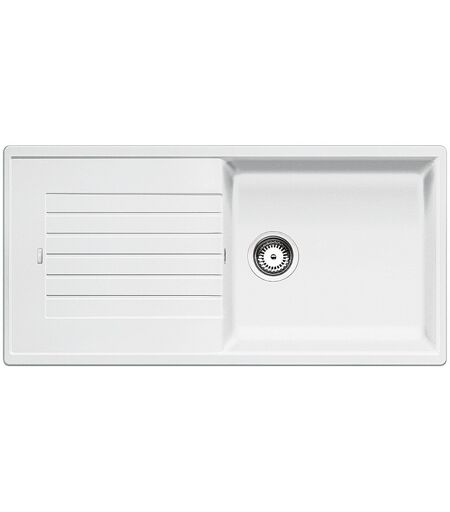 Characteristic tap ledge as a frame that enlarges the drainer. Classic bowl arrangement for reversible installation The straight-lined outer shape is emphasized by the narrow rim. Straight-lined outer emphasised by the narrow rim Characteristic tap ledge as a frame that enlarges the drainer This sink has a waste kit included which also contains a plug. Blanco Finish: White, Size: 202mm H x 500mm W x 615mm L ...