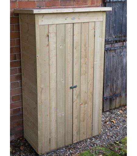 The attractive yet robust Shiplap Tall Garden Store is perfect for positioning against a wall or fence and with a relatively small footprint it will look stylish in any garden. With a capacity of 750 liters and a roof height of just under six feet, it is ideal for storing a wide range of outdoor equipment such as long-handled gardening tools, children's toys, or folding furniture – keeping your garden neat and free from clutter. Manufactured using smooth-planed, tight-fitting, Shiplap Tongue & Groove boards which have been treated with an anti-fungal preservative. This Pressure Treated finish gives a 15-year Anti-Rot guarantee. The front is finished with decorative smooth-planed barge boards. To keep the store weathertight, high-quality green mineral felt is fitted to the Pent roof, which can be assembled sloping backward or forward to suit personal preference and position. The Garden Store is also mounted on Pressure Treated bearers to keep it off the ground and dry. The double doors can be closed with the supplied turn-buttons and plate hasp and staple latch and secured with a padlock (not included). Also available with Apex roof. Forest Garden Installation Included: Yes ...