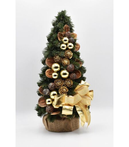 This beautiful handmade Christmas tree in a cone shape and featuring golden decorations brings a Christmassy feeling into any home. It will enhance any elegant room. The tree looks very natural, but is made of plastic, that's why you can use the pretty piece to decorate your home year after year. The unique, green Christmas tree is decorated on the one side with high-quality decorations. Thanks to its small size, the tree can be placed on the table, windowsill or desk and is ideally suited as a Christmas gift for all lovers of beautiful pieces. The Seasonal Aisle Size: 50 ...