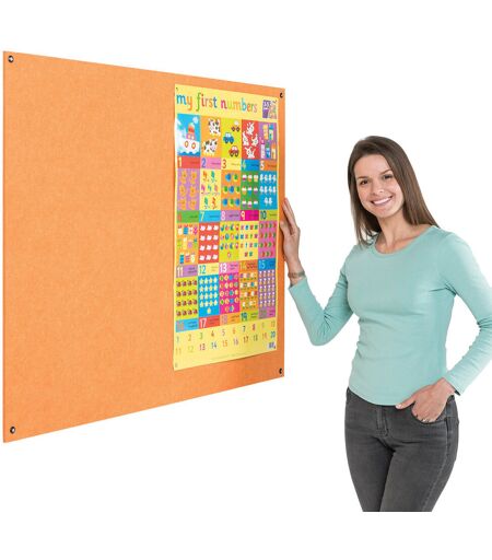 The new exclusive eco-colour pinnable board is made from recycled materials with both fire resistant and acoustic properties making this board ideal for use within busy public spaces, learning and office environments. Eco-colour is a self-coloured pinnable board made from recycled and recyclable materials and is available in a selection of popular 11 colours to suit any environment. This product has been independently tested and classified as class b according to European reaction to fire test bs en 13501-1 to meet public area building regulations for mounting in sensitive areas such as corridors, stairways and entrances. An acoustic wall feature can be created by mounting these frameless boards side by side. Easy through the board portrait or landscape mounting with fixings provided. Symple Stuff Colour: Orange, Size: 120cm H x 150cm W ...