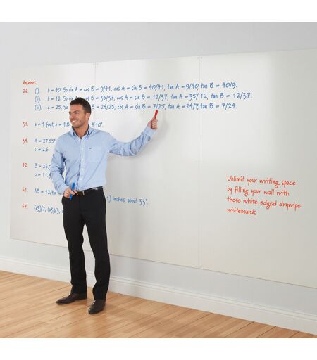 Create a continuous drywipe whiteboard wall. The tough ABS edged whiteboards mount flush to the wall and each other due to its frameless design, and simple through the board fixing. White cover caps mask the fixings. Please see some suggestions on how to cover specific wall dimensions. There are 6 standard sizes to choose from. Symple Stuff Size: 117.6cm H x 117.6cm W ...
