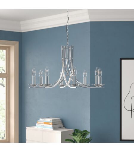 Three Posts Pamelia 8-Light Candle Style Chandelier Satin Silver 41.5cm H X 75cm W X 75cm D