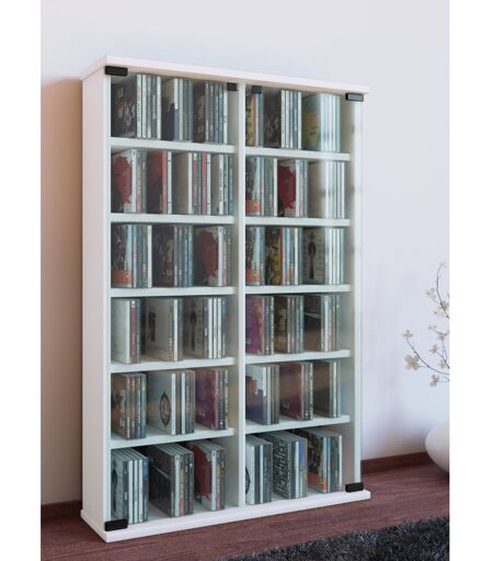 The Multimedia Cabinet features a transparent glass door, which allows you to take a quick look at your Audio CDs and DVDs. Made using wood, this multimedia storage space is sturdy. It has 10 variable shelves that let you accommodate 300 CDs, 130 DVDs, or 72 video CDs. Strong and durable, the glass doors are built from toughened ESG-safety glass. This multimedia storage space needs assembly. Latitude Run Colour: White ...