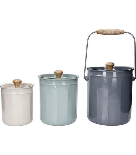 This KitchenCraft 3 piece compost and storage set are made from durable galvanized steel with a powder coated finish and a secure airtight lid. The set includes 1 medium and 1 small storage jar, great for dried goods like tea, coffee or rice and pasta. The set also includes a large compost caddy with an easy grip handle for carrying. Complete with a 12 month manufacturers guarantee. Small storage capacity is 1L and measures 11 cm x 11 cm x 13.5 cm, Medium storage is 1.9L and measures 13.5 x 13.5 x 16 cm and the large compost caddy measures 16 x 16 x 19 cm. ...