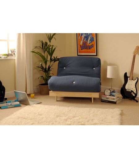 A futon is a functional and comfortable piece of furniture that acts as a sofa and a fold-out guest bed. This two-seater futon has a pine frame and a mattress with a thick, woven filling that has a non-removable 100% cotton cover. Ideal for the living area or a spare bedroom, the frame of this futon can even be painted to match your interior décor! Latitude Run Upholstery Colour: Navy, Size: 76cm H x 120cm W x 78cm D ...