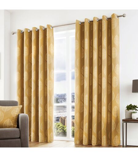 Subtle metallic leaves are Jacquard weaved into a heavyweight lined fabric to ensure these striking curtains will be the centrepiece of any room Ready-made pair of lined eyelet curtains A range of beautifully designed and expertly made curtains that will grace any room Curtina Panel Size: 229 W x 229 D cm, Colour: Ochre ...