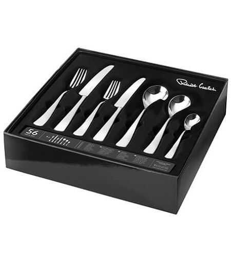 This Robert Welch Malvern Bright 56 Piece Cutlery Set is presented in an attractive gift box. The eight person set consists of eight table knives, eight table forks, eight soup spoons, eight side knives, eight side forks, eight dessert spoons and eight English tea spoons. Each piece has a mirror-polished finish and is manufactured from the finest quality 18/10 stainless steel. Part of the Malvern Bright range of cutlery by Robert Welch, characterised by simple, clean lines and a handle that flares softly to a gently curved base. Table knife length: 24.5cm. Table fork length: 20.8cm. Soup spoon length: 20.9cm. Side knife length: 22.3cm. Side fork length: 19.2cm. Dessert spoon length: 19cm. English tea spoon length: 13.7cm. Dishwasher safe and supplied with a Robert Welch 25 year guarantee. Knives are not for sale to persons under the age of 18. - all knives and bladed products are delivered by Age Verified Delivery (AVD). The carrier may request proof of age in order to deliver your parcel. If proof of age is not available, or the recipient is underage, the carrier will refuse to deliver. ...