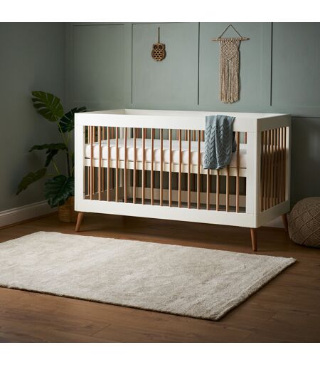 The crib is featuring a clean-cut finish and two-tone colorway, making it the perfect addition for families looking to create a modern and stylish nursery. Suitable from birth, the cot bed will grow with your little one. The top position of the three height-adjustable mattress bases allows you to put down your baby with less pressure and strain applied to your back and as they develop and start to find their feet, you can maintain their safety by lowering the base. Obaby Colour: White/Brown ...