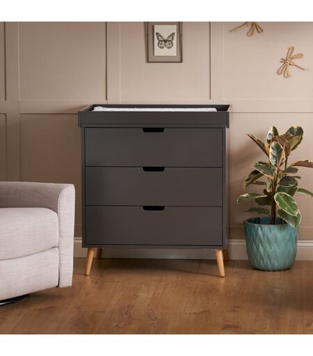 The product is inspired by a Scandinavian design, featuring a clean-cut finish and two-tone colorway, making it the perfect addition for families looking to create a modern and stylish nursery. The changing unit is the perfect storage companion, featuring three 34L capacity drawers with recessed handles that enable you to easily put away and quickly locate your little one’s belongings. On top of the unit is a changing area capable of fitting a changing mat up to 80 x 46.5cm. Once the changing area is no longer required it can be removed to create a stylish, flat-top chest of drawers that can be used for years to come. Obaby Colour: Gray/Beige ...