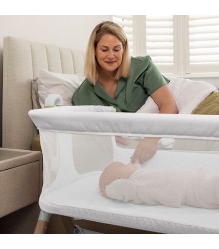 "Keeping Your Baby Close, Safe & Comfortable Those first few months with your little one are so special, but they can also be exhausting. The Cloud bedside crib is here to make nights a little easier for both you and your baby. With its soft oatmeal fabric, breathable design, and thoughtful features, it creates a cosy, secure and safe sleep space right by your side. Perfect for those late-night feeds, sleepy cuddles, and reassuring check-ins without ever needing to leave your bed. Designed for Restful Nights for You and Baby! You can easily adjust the crib’s height to ensure its in-line with your bed, so your baby is always within reach. And when those midnight feeds roll around, the Cloud bedside crib makes it effortless to scoop them up for a cuddle. The breathable mesh panels keep the air flowing and give you a clear view of your baby so you can check on them with just a glance. You won’t need to worry about accidentally waking your little one when you want to check in. The supportive mattress creates a snug and safe sleep space, while secure fastening straps keep the crib firmly in place, so you can rest easy knowing your little one is safe. A Crib That’s as Practical as It Is Beautiful This crib isn’t just about convenience—it’s designed to look and feel like a natural part of your home. The gentle oatmeal shade blends effortlessly into any bedroom décor, bringing a warm and calming touch. It’s spacious enough for your baby to sleep soundly but compact enough to fit snugly by your bedside without taking over the room. Need to move it? No problem. The lightweight but sturdy frame makes it easy to shift around when needed. Why You'll Love It Adjustable height: It easily aligns with most beds for stress-free bedside sleeping. Keep your baby close: Because nighttime feeds (and extra snuggles) should be simple. Breathable mesh panels: Keep air flowing easily whilst still letting you peek in without disturbing your baby. Supportive mattress: Soft yet safe, giving your little one the perfect sleep space. Secure attachment straps: These keep the crib firmly in place so you can relax and not worry about any movement whilst you’re both enjoying sweet dreams. Compact & lightweight: Sturdy enough for peace of mind but easy to move when needed to use around the whole house. The Cloud bedside crib in oatmeal is here to help you through those sleepy, beautiful, and unforgettable first months. Keeping your baby close, safe, and content while giving you the confidence to rest easy. " Obaby Colour: Grey ...