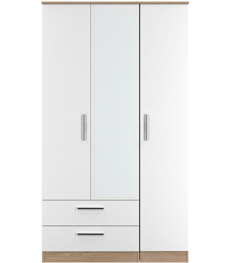 This tall triple 3 door wardrobe is perfect for any bedroom when a normal wardrobe is just not large enough. Also features 2 wide storage drawers for added practicality and a single mirrored door. Create your dream bedroom with our exclusive Contrast range. This range enhances the beauty of any bedroom style. This range is made up of high-quality materials & long-lasting finishes. The fronts are complemented by sleek designer-style metal handles and when you open the drawers, you'll notice the smooth metal runners and linen-look interior. All our furniture is made in the United Kingdom, to the highest quality. Welcome Furniture ...