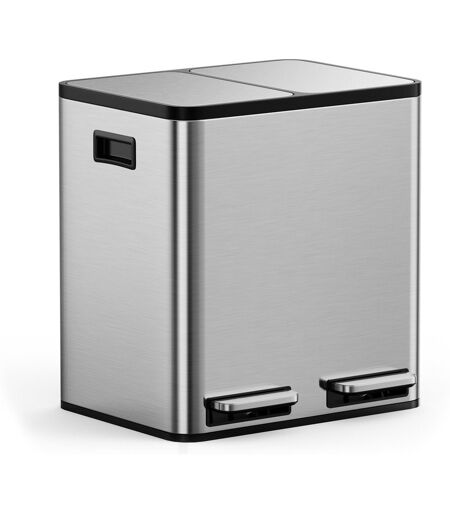 VonHaus 30L Dual Compartment Bin for Waste & Recycling Streamline your recycling today. Streamline your waste and separate as you go with the VonHaus dual recycling bin – designed to keep everything in one place and take the hassle out of waste management. The soft-close 85° lid ensures smooth, quiet operation in busy kitchens, without slamming shut or hitting the wall. Stainless Steel Double Recycling Bin 2 Compartment Bin with Soft-Close Lids Both hygienic and convenient, this stainless steel kitchen bin offers hands-free operation, so you can maintain a clean and tidy kitchen. With a compact design ideal for smaller kitchens, the two 15L compartments provide a space-saving solution for bottles, cans, and general waste. Once the kitchen recycling bin is full, use the integrated handles to empty the removable inner bins. Designed to keep your waste in and pests out, the firm-shut odour-seal lids take the rubbish out of rubbish bin! Non-Slip Base Ensures sturdy pedal operation and reduces spills. Even in manic family kitchens, rest assured that the two compartment bin will stay firmly in place. Stainless Steel Design Sleek, robust, and rust-resistant. Our dual pedal bin works in any space, with a fingerprint-resistant finish for that smart aesthetic. Hands-Free Operation Waste separation, made simple and hygienic. Create an orderly recycling system with ease using the double compartment bin's foot pedals. 2 x 15L Compartments Space-saving bin with recycling compartment. Easily empty out your dual rubbish bin, or use the inner bins outside for BBQs and garden parties. Ergonomic Soft-Close Lid Use the twin bin without slams or odours escaping. The odour seal traps unpleasant smells, letting you position the double pedal bin anywhere you like. VonHaus Colour: Stainless Steel ...