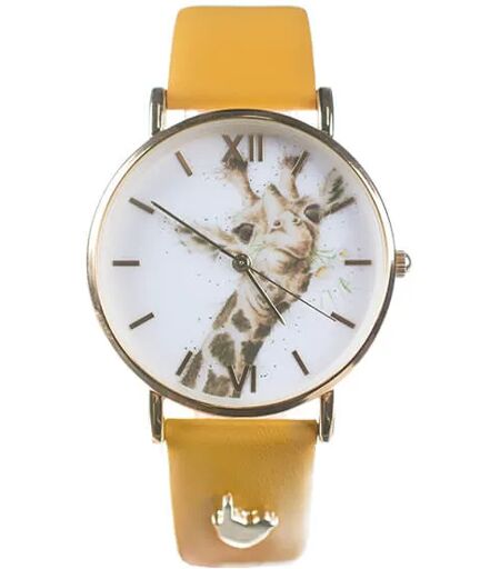 The Wrendale Designs 'Flowers' Giraffe Vegan Leather Watch, is a beautiful watch featuring a lovely giraffe and will add a touch of style and luxury to your wrist, making you really stand out from the crowd. The vegan leather strap is a lovely mustard colour with a gold wren detail on the strap and a buckle to fasten. This watch comes in a beautifully illustrated gift box making a gorgeous gift. The watch face is 3.6cm in diameter. Movement: Japanese Movement. Water Resistance: 3ATM (occasional contact with water). ...