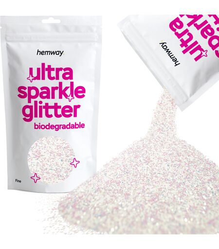 Introduction Add a dazzling touch to your crafts with our mother of pearl iridescent eco friendly ultra sparkle glitter. Our mother of pearl iridescent eco friendly ultra sparkle glitter is perfect for enhancing any project, from cosmetics, body, eye, and face art to festivals, hair, slime, and crafts. The glitter’s biodegradable properties make it an environmentally safe alternative, ideal for crafters seeking greener glitter options. Derived from sustainable resources, it provides a vibrant shimmer while protecting the planet. Perfect for all skill levels, it’s great for Christmas, Halloween, and special occasions. DISCLAIMER: Colours may vary in different lighting conditions. Open the tabs below for more information. Description Using our mother of pearl iridescent eco friendly ultra sparkle glitter is simple and effective. Just sprinkle or apply the glitter onto your desired surface while your adhesive remains tacky. Whether you're decorating glassware, creating homemade cards, or adding sparkle to your face or nails, this biodegradable ultra sparkle glitter is versatile and easy to use. Additionally, its eco-friendly and colourfast properties ensure your projects maintain their brilliance over time. This glitter is perfect for creating glittery decorations, cards, tumblers, and more. The variety of sizes in the glitter allows you to achieve a unique texture and dynamic sparkle in your projects. Our ultrafine biodegradable glitter is perfect for detailed work, achieving a smooth, even finish. For bolder looks, our chunky glitter provides a dramatic, textured effect, making your crafts stand out with a stunning sparkle. Recyclable We demonstrate our commitment to sustainability through our products. They are fully recyclable or made from recycled materials, including: Delivery Boxes Labels Pulp Fittings We focus on lowering our environmental impact with sustainable packaging choices. Vegan & Cruelty-Free Our mother of pearl iridescent eco friendly ultra sparkle glitter is proudly vegan & cruelty-free. Most Hemway products are meticulously crafted to be vegan and cruelty-free. As a result, our eco friendly ultra sparkle glitter contains no animal-derived ingredients and is never tested on animals. This dedication ensures that our entire range adheres to ethical standards. Consequently, we provide consumers with eco-friendly and humane options for all their crafting and DIY needs. How To Use Using our mother of pearl iridescent eco friendly ultra sparkle glitter is easy and versatile, suitable for various projects and surfaces. For general crafts: Start by applying a layer of glue or adhesive to your desired surface. While the glue is still wet, gently sprinkle the eco friendly ultra sparkle glitter over it, ensuring even coverage. For best results, use a small spoon or your fingers to distribute the glitter precisely. After applying, allow the glue to dry completely. Once dry, shake away any excess glitter. You can collect and reuse the excess... ...