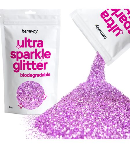 Introduction Add a dazzling touch to your crafts with our lavender purple eco friendly ultra sparkle glitter. Our lavender purple eco friendly ultra sparkle glitter is perfect for enhancing any project, from cosmetics, body, eye, and face art to festivals, hair, slime, and crafts. The glitter’s biodegradable properties make it an environmentally safe alternative, ideal for crafters seeking greener glitter options. Derived from sustainable resources, it provides a vibrant shimmer while protecting the planet. Perfect for all skill levels, it’s great for Christmas, Halloween, and special occasions. DISCLAIMER: Colours may vary in different lighting conditions. Open the tabs below for more information. Description Using our lavender purple eco friendly ultra sparkle glitter is simple and effective. Just sprinkle or apply the glitter onto your desired surface while your adhesive remains tacky. Whether you're decorating glassware, creating homemade cards, or adding sparkle to your face or nails, this biodegradable ultra sparkle glitter is versatile and easy to use. Additionally, its eco-friendly and colourfast properties ensure your projects maintain their brilliance over time. This glitter is perfect for creating glittery decorations, cards, tumblers, and more. The variety of sizes in the glitter allows you to achieve a unique texture and dynamic sparkle in your projects. Our ultrafine biodegradable glitter is perfect for detailed work, achieving a smooth, even finish. For bolder looks, our chunky glitter provides a dramatic, textured effect, making your crafts stand out with a stunning sparkle. Recyclable We demonstrate our commitment to sustainability through our products. They are fully recyclable or made from recycled materials, including: Delivery Boxes Labels Pulp Fittings We focus on lowering our environmental impact with sustainable packaging choices. Vegan & Cruelty-Free Our lavender purple eco friendly ultra sparkle glitter is proudly vegan & cruelty-free. Most Hemway products are meticulously crafted to be vegan and cruelty-free. As a result, our eco friendly ultra sparkle glitter contains no animal-derived ingredients and is never tested on animals. This dedication ensures that our entire range adheres to ethical standards. Consequently, we provide consumers with eco-friendly and humane options for all their crafting and DIY needs. How To Use Using our lavender purple eco friendly ultra sparkle glitter is easy and versatile, suitable for various projects and surfaces. For general crafts: Start by applying a layer of glue or adhesive to your desired surface. While the glue is still wet, gently sprinkle the eco friendly ultra sparkle glitter over it, ensuring even coverage. For best results, use a small spoon or your fingers to distribute the glitter precisely. After applying, allow the glue to dry completely. Once dry, shake away any excess glitter. You can collect and reuse the excess glitter for future projects, reducing waste and making... ...