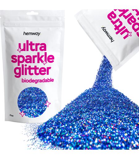 Introduction Transform your creations with our sapphire blue holographic eco friendly ultra sparkle glitter. Our sapphire blue holographic eco friendly ultra sparkle glitter is perfect for enhancing any project, from cosmetics, body, eye, and face art to festivals, hair, slime, and crafts. The glitter’s biodegradable properties make it an environmentally safe alternative, ideal for crafters seeking greener glitter options. Derived from sustainable resources, it provides a vibrant shimmer while protecting the planet. Perfect for all skill levels, it’s great for Christmas, Halloween, and special occasions. DISCLAIMER: Colours may vary in different lighting conditions. Open the tabs below for more information. Description Using our sapphire blue holographic eco friendly ultra sparkle glitter is simple and effective. Just sprinkle or apply the glitter onto your desired surface while your adhesive remains tacky. Whether you're decorating glassware, creating homemade cards, or adding sparkle to your face or nails, this biodegradable ultra sparkle glitter is versatile and easy to use. Additionally, its eco-friendly and colourfast properties ensure your projects maintain their brilliance over time. This glitter is perfect for creating glittery decorations, cards, tumblers, and more. The variety of sizes in the glitter allows you to achieve a unique texture and dynamic sparkle in your projects. Our ultrafine biodegradable glitter is perfect for detailed work, achieving a smooth, even finish. For bolder looks, our chunky glitter provides a dramatic, textured effect, making your crafts stand out with a stunning sparkle. What is Holographic Glitter? This is a special type of glitter that reflects light in a rainbow spectrum, creating a shimmering, multi-colour effect that changes depending on the angle of the light and the viewer’s perspective. Unlike regular glitter, which reflects light in a single or limited range of colours, holographic glitter has a prismatic or iridescent finish that gives it a more dynamic and eye-catching appearance. Recyclable We demonstrate our commitment to sustainability through our products. They are fully recyclable or made from recycled materials, including: Delivery Boxes Labels Pulp Fittings We focus on lowering our environmental impact with sustainable packaging choices. Vegan & Cruelty-Free Our sapphire blue holographic eco friendly ultra sparkle glitter is proudly vegan & cruelty-free. Most Hemway products are meticulously crafted to be vegan and cruelty-free. As a result, our eco friendly ultra sparkle glitter contains no animal-derived ingredients and is never tested on animals. This dedication ensures that our entire range adheres to ethical standards. Consequently, we provide consumers with eco-friendly and humane options for all their crafting and DIY needs. How To Use Using our sapphire blue holographic eco friendly ultra sparkle glitter is easy and versatile, suitable for various projects and surfaces. For general... ...