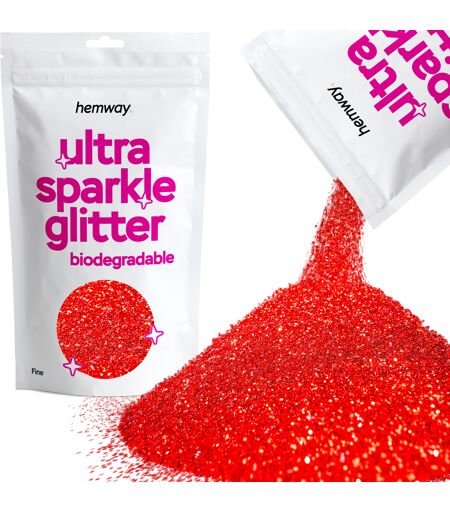 Introduction Add a dazzling touch to your crafts with our red eco friendly ultra sparkle glitter. Our red eco friendly ultra sparkle glitter is perfect for enhancing any project, from cosmetics, body, eye, and face art to festivals, hair, slime, and crafts. The glitter’s biodegradable properties make it an environmentally safe alternative, ideal for crafters seeking greener glitter options. Derived from sustainable resources, it provides a vibrant shimmer while protecting the planet. Perfect for all skill levels, it’s great for Christmas, Halloween, and special occasions. DISCLAIMER: Colours may vary in different lighting conditions. Open the tabs below for more information. Description Using our red eco friendly ultra sparkle glitter is simple and effective. Just sprinkle or apply the glitter onto your desired surface while your adhesive remains tacky. Whether you're decorating glassware, creating homemade cards, or adding sparkle to your face or nails, this biodegradable ultra sparkle glitter is versatile and easy to use. Additionally, its eco-friendly and colourfast properties ensure your projects maintain their brilliance over time. This glitter is perfect for creating glittery decorations, cards, tumblers, and more. The variety of sizes in the glitter allows you to achieve a unique texture and dynamic sparkle in your projects. Our ultrafine biodegradable glitter is perfect for detailed work, achieving a smooth, even finish. For bolder looks, our chunky glitter provides a dramatic, textured effect, making your crafts stand out with a stunning sparkle. Recyclable We demonstrate our commitment to sustainability through our products. They are fully recyclable or made from recycled materials, including: Delivery Boxes Labels Pulp Fittings We focus on lowering our environmental impact with sustainable packaging choices. Vegan & Cruelty-Free Our red eco friendly ultra sparkle glitter is proudly vegan & cruelty-free. Most Hemway products are meticulously crafted to be vegan and cruelty-free. As a result, our eco friendly ultra sparkle glitter contains no animal-derived ingredients and is never tested on animals. This dedication ensures that our entire range adheres to ethical standards. Consequently, we provide consumers with eco-friendly and humane options for all their crafting and DIY needs. How To Use Using our red eco friendly ultra sparkle glitter is easy and versatile, suitable for various projects and surfaces. For general crafts: Start by applying a layer of glue or adhesive to your desired surface. While the glue is still wet, gently sprinkle the eco friendly ultra sparkle glitter over it, ensuring even coverage. For best results, use a small spoon or your fingers to distribute the glitter precisely. After applying, allow the glue to dry completely. Once dry, shake away any excess glitter. You can collect and reuse the excess glitter for future projects, reducing waste and making the most out of your glitter supply. For face & body art:... ...