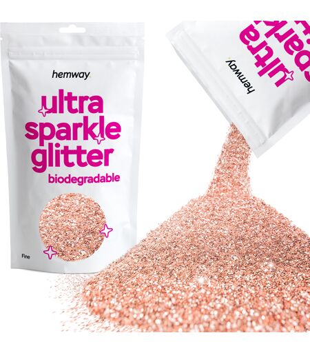 Introduction Enhance your craft projects with our rose gold eco friendly ultra sparkle glitter. Our rose gold eco friendly ultra sparkle glitter is perfect for enhancing any project, from cosmetics, body, eye, and face art to festivals, hair, slime, and crafts. The glitter’s biodegradable properties make it an environmentally safe alternative, ideal for crafters seeking greener glitter options. Derived from sustainable resources, it provides a vibrant shimmer while protecting the planet. Perfect for all skill levels, it’s great for Christmas, Halloween, and special occasions. DISCLAIMER: Colours may vary in different lighting conditions. Open the tabs below for more information. Description Using our rose gold eco friendly ultra sparkle glitter is simple and effective. Just sprinkle or apply the glitter onto your desired surface while your adhesive remains tacky. Whether you're decorating glassware, creating homemade cards, or adding sparkle to your face or nails, this biodegradable ultra sparkle glitter is versatile and easy to use. Additionally, its eco-friendly and colourfast properties ensure your projects maintain their brilliance over time. This glitter is perfect for creating glittery decorations, cards, tumblers, and more. The variety of sizes in the glitter allows you to achieve a unique texture and dynamic sparkle in your projects. Our ultrafine biodegradable glitter is perfect for detailed work, achieving a smooth, even finish. For bolder looks, our chunky glitter provides a dramatic, textured effect, making your crafts stand out with a stunning sparkle. Recyclable We demonstrate our commitment to sustainability through our products. They are fully recyclable or made from recycled materials, including: Delivery Boxes Labels Pulp Fittings We focus on lowering our environmental impact with sustainable packaging choices. Vegan & Cruelty-Free Our rose gold eco friendly ultra sparkle glitter is proudly vegan & cruelty-free. Most Hemway products are meticulously crafted to be vegan and cruelty-free. As a result, our eco friendly ultra sparkle glitter contains no animal-derived ingredients and is never tested on animals. This dedication ensures that our entire range adheres to ethical standards. Consequently, we provide consumers with eco-friendly and humane options for all their crafting and DIY needs. How To Use Using our rose gold eco friendly ultra sparkle glitter is easy and versatile, suitable for various projects and surfaces. For general crafts: Start by applying a layer of glue or adhesive to your desired surface. While the glue is still wet, gently sprinkle the eco friendly ultra sparkle glitter over it, ensuring even coverage. For best results, use a small spoon or your fingers to distribute the glitter precisely. After applying, allow the glue to dry completely. Once dry, shake away any excess glitter. You can collect and reuse the excess glitter for future projects, reducing waste and making the most out of your glitter supply.... ...