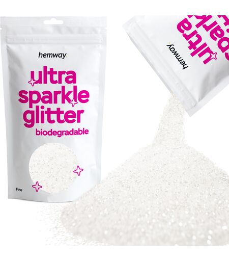 Introduction Enhance your craft projects with our white iridescent eco friendly ultra sparkle glitter. Our white iridescent eco friendly ultra sparkle glitter is perfect for enhancing any project, from cosmetics, body, eye, and face art to festivals, hair, slime, and crafts. The glitter’s biodegradable properties make it an environmentally safe alternative, ideal for crafters seeking greener glitter options. Derived from sustainable resources, it provides a vibrant shimmer while protecting the planet. Perfect for all skill levels, it’s great for Christmas, Halloween, and special occasions. DISCLAIMER: Colours may vary in different lighting conditions. Open the tabs below for more information. Description Using our white iridescent eco friendly ultra sparkle glitter is simple and effective. Just sprinkle or apply the glitter onto your desired surface while your adhesive remains tacky. Whether you're decorating glassware, creating homemade cards, or adding sparkle to your face or nails, this biodegradable ultra sparkle glitter is versatile and easy to use. Additionally, its eco-friendly and colourfast properties ensure your projects maintain their brilliance over time. This glitter is perfect for creating glittery decorations, cards, tumblers, and more. The variety of sizes in the glitter allows you to achieve a unique texture and dynamic sparkle in your projects. Our ultrafine biodegradable glitter is perfect for detailed work, achieving a smooth, even finish. For bolder looks, our chunky glitter provides a dramatic, textured effect, making your crafts stand out with a stunning sparkle. Recyclable We demonstrate our commitment to sustainability through our products. They are fully recyclable or made from recycled materials, including: Delivery Boxes Labels Pulp Fittings We focus on lowering our environmental impact with sustainable packaging choices. Vegan & Cruelty-Free Our white iridescent eco friendly ultra sparkle glitter is proudly vegan & cruelty-free. Most Hemway products are meticulously crafted to be vegan and cruelty-free. As a result, our eco friendly ultra sparkle glitter contains no animal-derived ingredients and is never tested on animals. This dedication ensures that our entire range adheres to ethical standards. Consequently, we provide consumers with eco-friendly and humane options for all their crafting and DIY needs. How To Use Using our white iridescent eco friendly ultra sparkle glitter is easy and versatile, suitable for various projects and surfaces. For general crafts: Start by applying a layer of glue or adhesive to your desired surface. While the glue is still wet, gently sprinkle the eco friendly ultra sparkle glitter over it, ensuring even coverage. For best results, use a small spoon or your fingers to distribute the glitter precisely. After applying, allow the glue to dry completely. Once dry, shake away any excess glitter. You can collect and reuse the excess glitter for future projects, reducing waste and making the... ...