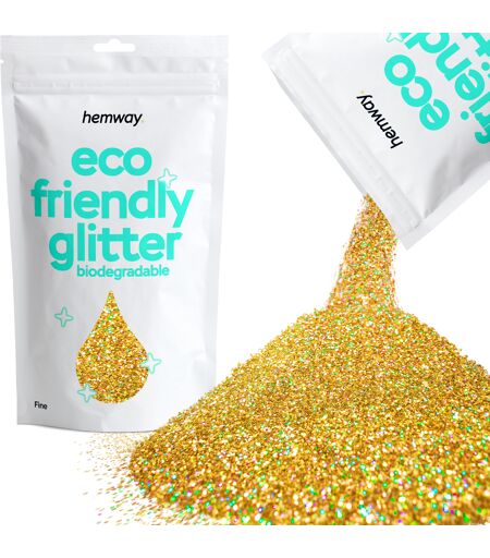 Introduction Discover vibrant shimmer with our gold holographic eco glitter. Our eco friendly biodegradable glitter is perfect for enhancing any project, from cosmetics, body, eye, and face art to festivals, hair, slime, and crafts. Additionally, the glitter’s biodegradable properties make it an environmentally safe alternative, ideal for crafters seeking greener glitter options. Derived from sustainable resources, it provides a vibrant shimmer while protecting the planet. Perfect for all skill levels, it’s great for Christmas, Halloween, and special occasions. DISCLAIMER: Colours may vary in different lighting conditions. Open the tabs below for more information. Description Using our gold holographic eco friendly biodegradable glitter is simple and effective. Just sprinkle or apply the glitter onto your desired surface while your adhesive remains tacky. Whether you're decorating glassware, creating homemade cards, or adding sparkle to your face or nails, this biodegradable glitter is versatile and easy to use. Moreover, its eco-friendly and colorfast properties ensure your projects maintain their brilliance over time. This environmentally safe glitter is ideal for crafts, cosmetics, and face art, offering a radiant finish without harming the environment. In addition, this technique works wonderfully for creating glittery decorations, jewellery, and more. Our ultrafine (extrafine) biodegradable glitter is perfect for detailed work, achieving a smooth, even finish. For bolder looks, our chunky glitter provides a dramatic, textured effect. Furthermore, our eco friendly biodegradable glitter is safe, non-toxic, and skin-friendly. This makes it ideal for various uses, including biodegradable face glitter for festivals, body glitter, and nail art. The glitter particles adhere smoothly to different surfaces, offering a consistent, sparkling finish. Ultimately, you can create stunning, shimmering crafts with our high-quality gold holographic eco friendly biodegradable glitter. It brings a burst of sparkle to every project, making it perfect for seasonal crafts like Christmas ornaments, Halloween decorations, or even festival makeup. What is Holographic Glitter? This is a special type of glitter that reflects light in a rainbow spectrum, creating a shimmering, multi-colour effect that changes depending on the angle of the light and the viewer’s perspective. Unlike regular glitter, which reflects light in a single or limited range of colours, holographic glitter has a prismatic or iridescent finish that gives it a more dynamic and eye-catching appearance. Recyclable We demonstrate our commitment to sustainability through our products. They are fully recyclable or made from recycled materials, including: Delivery Boxes Labels Pulp Fittings We focus on lowering our environmental impact with sustainable packaging choices. Vegan & Cruelty-Free Our gold holographic eco friendly biodegradable glitter is proudly vegan & cruelty-free. Most Hemway products are... ...