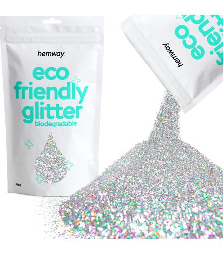 Introduction Discover vibrant shimmer with our silver holographic eco glitter. Our eco friendly biodegradable glitter is perfect for enhancing any project, from cosmetics, body, eye, and face art to festivals, hair, slime, and crafts. Additionally, the glitter’s biodegradable properties make it an environmentally safe alternative, ideal for crafters seeking greener glitter options. Derived from sustainable resources, it provides a vibrant shimmer while protecting the planet. Perfect for all skill levels, it’s great for Christmas, Halloween, and special occasions. DISCLAIMER: Colours may vary in different lighting conditions. Open the tabs below for more information. Description Using our silver holographic eco friendly biodegradable glitter is simple and effective. Just sprinkle or apply the glitter onto your desired surface while your adhesive remains tacky. Whether you're decorating glassware, creating homemade cards, or adding sparkle to your face or nails, this biodegradable glitter is versatile and easy to use. Moreover, its eco-friendly and colorfast properties ensure your projects maintain their brilliance over time. This environmentally safe glitter is ideal for crafts, cosmetics, and face art, offering a radiant finish without harming the environment. In addition, this technique works wonderfully for creating glittery decorations, jewellery, and more. Our ultrafine (extrafine) biodegradable glitter is perfect for detailed work, achieving a smooth, even finish. For bolder looks, our chunky glitter provides a dramatic, textured effect. Furthermore, our eco friendly biodegradable glitter is safe, non-toxic, and skin-friendly. This makes it ideal for various uses, including biodegradable face glitter for festivals, body glitter, and nail art. The glitter particles adhere smoothly to different surfaces, offering a consistent, sparkling finish. Ultimately, you can create stunning, shimmering crafts with our high-quality silver holographic eco friendly biodegradable glitter. It brings a burst of sparkle to every project, making it perfect for seasonal crafts like Christmas ornaments, Halloween decorations, or even festival makeup. What is Holographic Glitter? This is a special type of glitter that reflects light in a rainbow spectrum, creating a shimmering, multi-colour effect that changes depending on the angle of the light and the viewer’s perspective. Unlike regular glitter, which reflects light in a single or limited range of colours, holographic glitter has a prismatic or iridescent finish that gives it a more dynamic and eye-catching appearance. Recyclable We demonstrate our commitment to sustainability through our products. They are fully recyclable or made from recycled materials, including: Delivery Boxes Labels Pulp Fittings We focus on lowering our environmental impact with sustainable packaging choices. Vegan & Cruelty-Free Our silver holographic eco friendly biodegradable glitter is proudly vegan & cruelty-free. Most Hemway... ...