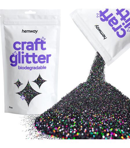 Introduction Transform your crafts with the radiant shimmer of our black holographic eco-friendly biodegradable craft glitter. Our black holographic eco-friendly biodegradable glitter is ideal for projects like glass, tumblers, cards, slime, and decorations. Its biodegradable properties make it a greener choice for crafters who want to reduce their environmental impact. Made from sustainable resources, this glitter adds a vibrant shimmer while protecting the planet. It works well for all skill levels, making it perfect for Christmas, Halloween, or any special occasion. DISCLAIMER: Colours may vary in different lighting conditions. Open the tabs below for more information. Description Our black holographic eco-friendly biodegradable craft glitter is both easy to use and effective. Sprinkle or apply the glitter to your surface while the adhesive is still tacky. Whether you're decorating glass, creating cards, or adding sparkle to crafts, this biodegradable glitter offers versatility and simplicity. In addition, its eco-friendly and colour-safe qualities ensure your projects remain bright over time. The fine biodegradable glitter provides a smooth finish for detailed work, while the chunky glitter adds bold texture and sparkle for standout designs. What is Holographic Glitter? This is a special type of glitter that reflects light in a rainbow spectrum, creating a shimmering, multi-colour effect that changes depending on the angle of the light and the viewer’s perspective. Unlike regular glitter, which reflects light in a single or limited range of colours, holographic glitter has a prismatic or iridescent finish that gives it a more dynamic and eye-catching appearance. Recyclable We are dedicated to sustainability through our products. Not only do we use fully recyclable packaging, but we also create our packaging from recycled materials, such as: Delivery Boxes Labels Pulp Fittings We focus on lowering our environmental impact with sustainable packaging choices. Vegan & Cruelty-Free Our black holographic eco-friendly biodegradable craft glitter is proudly vegan and cruelty-free. Hemway ensures all our products, including eco-friendly biodegradable craft glitter, are made without animal-derived ingredients. We never test on animals, adhering to strict ethical standards. This commitment allows you to craft with products that are kind to animals and the environment. How To Use Using our black holographic eco-friendly biodegradable glitter is simple and works for many projects. For general crafts: Begin by applying a layer of glue or adhesive to your surface. While the glue is wet, gently sprinkle the biodegradable glitter to ensure even coverage. You can use a small spoon or your fingers for precise distribution. Glitter Responsibly Use our black holographic eco-friendly biodegradable craft glitter responsibly. We love glitter, but we must consider its impact on the environment. Although biodegradable glitter decomposes faster than regular glitter, it... ...