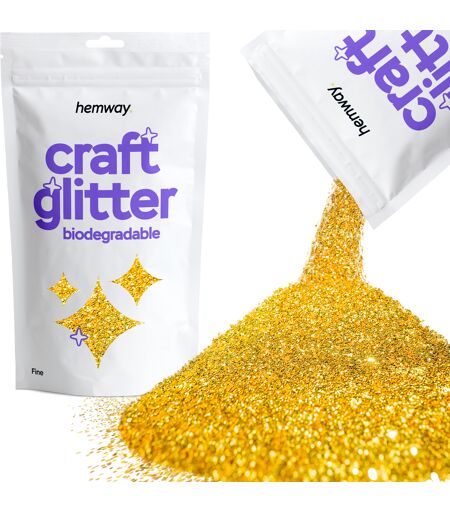 Introduction Transform your crafts with the radiant shimmer of our gold eco-friendly biodegradable craft glitter. Our gold eco-friendly biodegradable glitter is ideal for projects like glass, tumblers, cards, slime, and decorations. Its biodegradable properties make it a greener choice for crafters who want to reduce their environmental impact. Made from sustainable resources, this glitter adds a vibrant shimmer while protecting the planet. It works well for all skill levels, making it perfect for Christmas, Halloween, or any special occasion. DISCLAIMER: Colours may vary in different lighting conditions. Open the tabs below for more information. Description Our gold eco-friendly biodegradable craft glitter is both easy to use and effective. Sprinkle or apply the glitter to your surface while the adhesive is still tacky. Whether you're decorating glass, creating cards, or adding sparkle to crafts, this biodegradable glitter offers versatility and simplicity. In addition, its eco-friendly and colour-safe qualities ensure your projects remain bright over time. The fine biodegradable glitter provides a smooth finish for detailed work, while the chunky glitter adds bold texture and sparkle for standout designs. Recyclable We are dedicated to sustainability through our products. Not only do we use fully recyclable packaging, but we also create our packaging from recycled materials, such as: Delivery Boxes Labels Pulp Fittings We focus on lowering our environmental impact with sustainable packaging choices. Vegan & Cruelty-Free Our gold eco-friendly biodegradable craft glitter is proudly vegan and cruelty-free. Hemway ensures all our products, including eco-friendly biodegradable craft glitter, are made without animal-derived ingredients. We never test on animals, adhering to strict ethical standards. This commitment allows you to craft with products that are kind to animals and the environment. How To Use Using our gold eco-friendly biodegradable glitter is simple and works for many projects. For general crafts: Begin by applying a layer of glue or adhesive to your surface. While the glue is wet, gently sprinkle the biodegradable glitter to ensure even coverage. You can use a small spoon or your fingers for precise distribution. Glitter Responsibly Use our gold eco-friendly biodegradable craft glitter responsibly. We love glitter, but we must consider its impact on the environment. Although biodegradable glitter decomposes faster than regular glitter, it still requires specific conditions—such as heat, moisture, and microorganisms—to break down. These conditions are typically found in industrial composting facilities rather than at home. Here are some tips for responsible glitter use: Create an area to catch excess glitter: Before you open a packet or apply the glitter, set up a space to collect any that might fall. This way, you can easily reuse it later. Avoid using water for cleanup: Use a vacuum cleaner to pick up most of the glitter. For smaller... ...