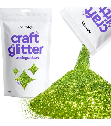 Introduction Enhance your projects with our lime green eco-friendly biodegradable craft glitter, perfect for special occasions. Our lime green eco-friendly biodegradable glitter is ideal for projects like glass, tumblers, cards, slime, and decorations. Its biodegradable properties make it a greener choice for crafters who want to reduce their environmental impact. Made from sustainable resources, this glitter adds a vibrant shimmer while protecting the planet. It works well for all skill levels, making it perfect for Christmas, Halloween, or any special occasion. DISCLAIMER: Colours may vary in different lighting conditions. Open the tabs below for more information. Description Our lime green eco-friendly biodegradable craft glitter is both easy to use and effective. Sprinkle or apply the glitter to your surface while the adhesive is still tacky. Whether you're decorating glass, creating cards, or adding sparkle to crafts, this biodegradable glitter offers versatility and simplicity. In addition, its eco-friendly and colour-safe qualities ensure your projects remain bright over time. The fine biodegradable glitter provides a smooth finish for detailed work, while the chunky glitter adds bold texture and sparkle for standout designs. Recyclable We are dedicated to sustainability through our products. Not only do we use fully recyclable packaging, but we also create our packaging from recycled materials, such as: Delivery Boxes Labels Pulp Fittings We focus on lowering our environmental impact with sustainable packaging choices. Vegan & Cruelty-Free Our lime green eco-friendly biodegradable craft glitter is proudly vegan and cruelty-free. Hemway ensures all our products, including eco-friendly biodegradable craft glitter, are made without animal-derived ingredients. We never test on animals, adhering to strict ethical standards. This commitment allows you to craft with products that are kind to animals and the environment. How To Use Using our lime green eco-friendly biodegradable glitter is simple and works for many projects. For general crafts: Begin by applying a layer of glue or adhesive to your surface. While the glue is wet, gently sprinkle the biodegradable glitter to ensure even coverage. You can use a small spoon or your fingers for precise distribution. Glitter Responsibly Use our lime green eco-friendly biodegradable craft glitter responsibly. We love glitter, but we must consider its impact on the environment. Although biodegradable glitter decomposes faster than regular glitter, it still requires specific conditions—such as heat, moisture, and microorganisms—to break down. These conditions are typically found in industrial composting facilities rather than at home. Here are some tips for responsible glitter use: Create an area to catch excess glitter: Before you open a packet or apply the glitter, set up a space to collect any that might fall. This way, you can easily reuse it later. Avoid using water for cleanup: Use a vacuum cleaner... ...