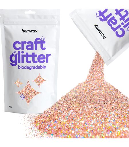 Introduction Enhance your projects with our rose gold holographic eco-friendly biodegradable craft glitter, perfect for special occasions. Our rose gold holographic eco-friendly biodegradable glitter is ideal for projects like glass, tumblers, cards, slime, and decorations. Its biodegradable properties make it a greener choice for crafters who want to reduce their environmental impact. Made from sustainable resources, this glitter adds a vibrant shimmer while protecting the planet. It works well for all skill levels, making it perfect for Christmas, Halloween, or any special occasion. DISCLAIMER: Colours may vary in different lighting conditions. Open the tabs below for more information. Description Our rose gold holographic eco-friendly biodegradable craft glitter is both easy to use and effective. Sprinkle or apply the glitter to your surface while the adhesive is still tacky. Whether you're decorating glass, creating cards, or adding sparkle to crafts, this biodegradable glitter offers versatility and simplicity. In addition, its eco-friendly and colour-safe qualities ensure your projects remain bright over time. The fine biodegradable glitter provides a smooth finish for detailed work, while the chunky glitter adds bold texture and sparkle for standout designs. What is Holographic Glitter? This is a special type of glitter that reflects light in a rainbow spectrum, creating a shimmering, multi-colour effect that changes depending on the angle of the light and the viewer’s perspective. Unlike regular glitter, which reflects light in a single or limited range of colours, holographic glitter has a prismatic or iridescent finish that gives it a more dynamic and eye-catching appearance. Recyclable We are dedicated to sustainability through our products. Not only do we use fully recyclable packaging, but we also create our packaging from recycled materials, such as: Delivery Boxes Labels Pulp Fittings We focus on lowering our environmental impact with sustainable packaging choices. Vegan & Cruelty-Free Our rose gold holographic eco-friendly biodegradable craft glitter is proudly vegan and cruelty-free. Hemway ensures all our products, including eco-friendly biodegradable craft glitter, are made without animal-derived ingredients. We never test on animals, adhering to strict ethical standards. This commitment allows you to craft with products that are kind to animals and the environment. How To Use Using our rose gold holographic eco-friendly biodegradable glitter is simple and works for many projects. For general crafts: Begin by applying a layer of glue or adhesive to your surface. While the glue is wet, gently sprinkle the biodegradable glitter to ensure even coverage. You can use a small spoon or your fingers for precise distribution. Glitter Responsibly Use our rose gold holographic eco-friendly biodegradable craft glitter responsibly. We love glitter, but we must consider its impact on the environment. Although biodegradable glitter decomposes... ...