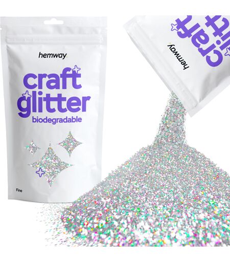 Introduction Add a sparkling touch to your crafts with our silver holographic eco-friendly biodegradable craft glitter. Our silver holographic eco-friendly biodegradable glitter is ideal for projects like glass, tumblers, cards, slime, and decorations. Its biodegradable properties make it a greener choice for crafters who want to reduce their environmental impact. Made from sustainable resources, this glitter adds a vibrant shimmer while protecting the planet. It works well for all skill levels, making it perfect for Christmas, Halloween, or any special occasion. DISCLAIMER: Colours may vary in different lighting conditions. Open the tabs below for more information. Description Our silver holographic eco-friendly biodegradable craft glitter is both easy to use and effective. Sprinkle or apply the glitter to your surface while the adhesive is still tacky. Whether you're decorating glass, creating cards, or adding sparkle to crafts, this biodegradable glitter offers versatility and simplicity. In addition, its eco-friendly and colour-safe qualities ensure your projects remain bright over time. The fine biodegradable glitter provides a smooth finish for detailed work, while the chunky glitter adds bold texture and sparkle for standout designs. What is Holographic Glitter? This is a special type of glitter that reflects light in a rainbow spectrum, creating a shimmering, multi-colour effect that changes depending on the angle of the light and the viewer’s perspective. Unlike regular glitter, which reflects light in a single or limited range of colours, holographic glitter has a prismatic or iridescent finish that gives it a more dynamic and eye-catching appearance. Recyclable We are dedicated to sustainability through our products. Not only do we use fully recyclable packaging, but we also create our packaging from recycled materials, such as: Delivery Boxes Labels Pulp Fittings We focus on lowering our environmental impact with sustainable packaging choices. Vegan & Cruelty-Free Our silver holographic eco-friendly biodegradable craft glitter is proudly vegan and cruelty-free. Hemway ensures all our products, including eco-friendly biodegradable craft glitter, are made without animal-derived ingredients. We never test on animals, adhering to strict ethical standards. This commitment allows you to craft with products that are kind to animals and the environment. How To Use Using our silver holographic eco-friendly biodegradable glitter is simple and works for many projects. For general crafts: Begin by applying a layer of glue or adhesive to your surface. While the glue is wet, gently sprinkle the biodegradable glitter to ensure even coverage. You can use a small spoon or your fingers for precise distribution. Glitter Responsibly Use our silver holographic eco-friendly biodegradable craft glitter responsibly. We love glitter, but we must consider its impact on the environment. Although biodegradable glitter decomposes faster than regular glitter, it... ...