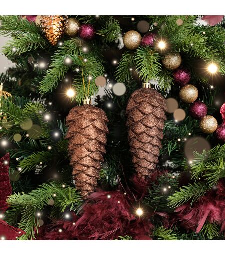 Set of 2 Tan Glittered Pinecone Bauble Decoration - 12cm Material: Christmas Decorations