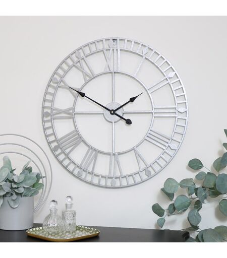 Silver Metal Skeleton Clock 60cm x 60cm Material: Home Decor & Accessories/Clocks