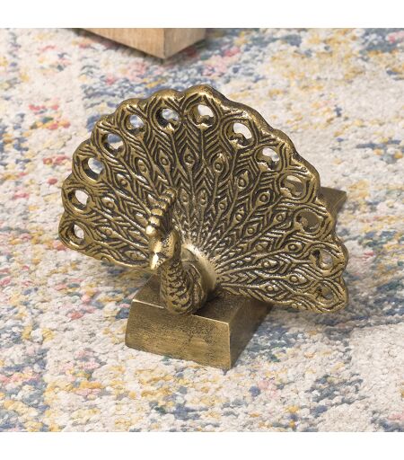 Antique Brass Gold Metal Peacock Doorstop Material: Home Decor & Accessories