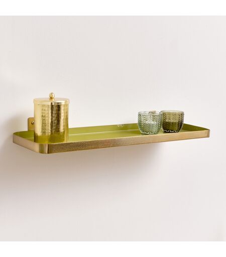 Gold & Olive Green Enamelled Metal Wall Shelf - 50cm Material: Home Decor & Accessories/Shelves & Storage