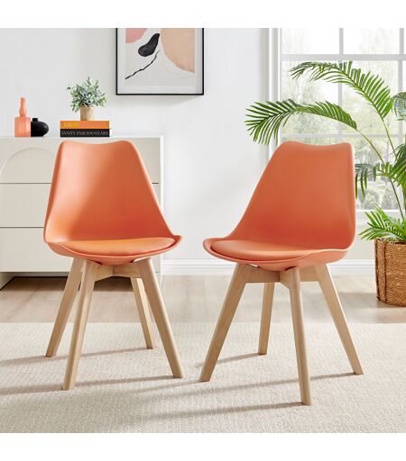 Our Stolm chairs have a minimalist Scandinavian chic vibe. The simple angled wooden legs create a beautiful contrast with the orange faux leather chair. This is a modern dining chair that will add a splash of color to your home and dining area. These chairs are the perfect combination of comfort and original style and will fit any wooden dining table. The curved, ergonomic backrests fit perfectly to the shape of your body, providing excellent comfort. The wooden legs not only add an aesthetic touch but also provide stability for use in different environments. Our models are fantastic value for money and can add a touch of class to any dining room or create a great one-off style statement. Check out the entire Stolm range today. Furniture Box Upholstery Colour: Orange ...