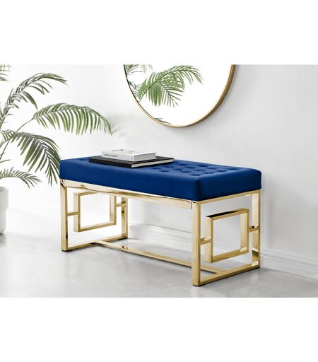Furniture Box Camberley Luxury Velvet Upholstered Bedroom Bench - Dressing Table Seat or End of Bed Bench Navy/Gold 48cm H X 98cm W X 46cm D