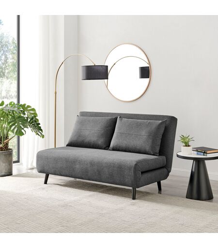 Furniture Box Brody 2 Seater Sofa Bed - Luxury Simple Modern Folding Design Dark Grey Cotton Blend 83cm H X 140cm W X 91cm D