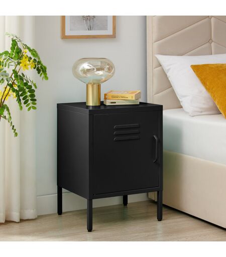 Furniture Box Tekki Metal Single Door Locker Style Bedside Table - Modern Industrial Style Black 59.5cm H X 42.5cm W X 40cm D