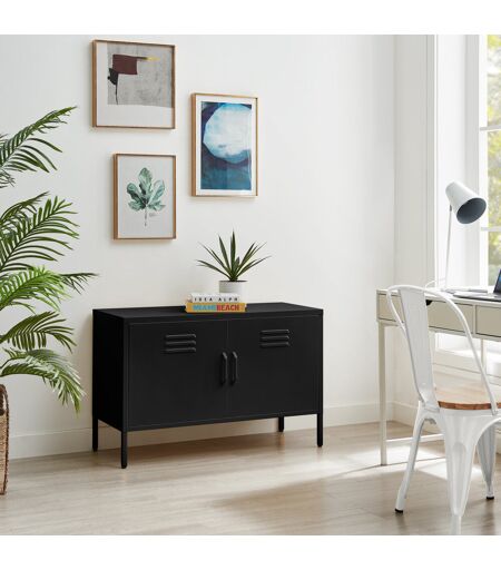 Furniture Box Tekki Metal Two Door Locker Style Sideboard - Bold Colour Modern Industrial Style Black 64cm H X 100cm W X 40cm D