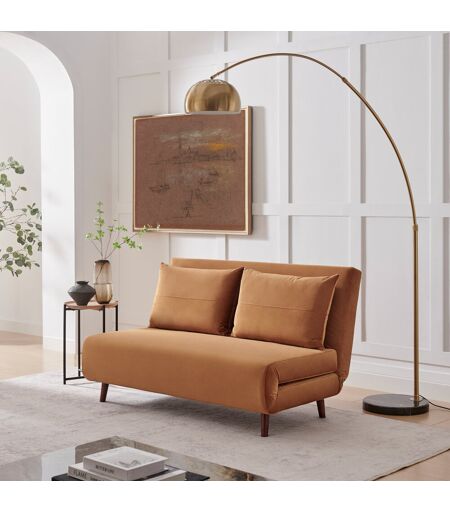 Furniture Box Brody 2 Seater Sofa Bed - Luxury Simple Modern Folding Design Orange Velvet 83cm H X 140cm W X 91cm D