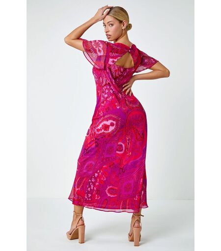 Paisley Print Cowl Neck Dress by Roman UK Steal the spotlight in this vibrant Paisley print piece This Dusk midi dress is the perfect pick for any occasion a day at the races family party or even a fancy holiday meal Its cut from a lightweight chiffon and detailed with an incredibly feminine cut out detail on the back accentuated further by the cowled neckline and short angel sleeves This luxe occasion dress is fastened with a neat button and rouleau loop at the back neck Pair this piece with a strappy sandal heel for a look that oozes Summer glamour Womens Regular fit True to size 100 Polyester Machine Washable Length Approx 122cm Cut Out Detail ...