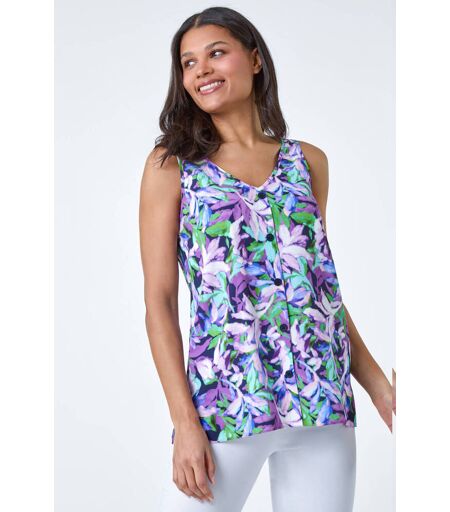 Sleeveless Leaf Print Button Cami Top by Roman UK Designed in a cool sleeveless style from a smooth woven fabric this leaf print cami oozes Summer style It features a feminine v neckline and sweet button detail along the bodice Designed to pull on overhead this is perfect for onthego fashion when the weather gets warmer Add light denim shorts and sandals to complete your holiday packing list or reach for cropped trousers for goto casualwear Womens Regular fit True to size 100 Polyester Machine Washable Length Approx 66cm 100 Polyester ...