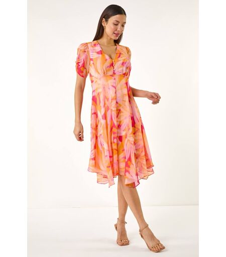 Roman Abstract Painted Floral Hanky Hem Dress 18 female