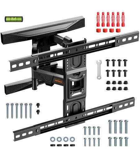 Get the cinema experience with this premium TV bracket. Giving you full control over the positioning of your screen, this bracket has full motion with a tilt range and a swivel range. With the built-in level adjustment, you can ensure perfect positioning with no fuss. Suitable for a whole range of TVs including HD TV, LED LCD plasma, and curved screens, this bracket also has a cable management system to elegantly hide any wires for a tidy appearance. Easily installed with a snap-in and quick-release VESA plate, this premium bracket comes with a spirit level, screw kit, and HDMI cable to have it up and working in no time. With a maximum weight capacity of 35kg, this bracket is heavy-duty and reliable. Ensure to check your TV’s VESA compatibility before purchasing. VonHaus ...