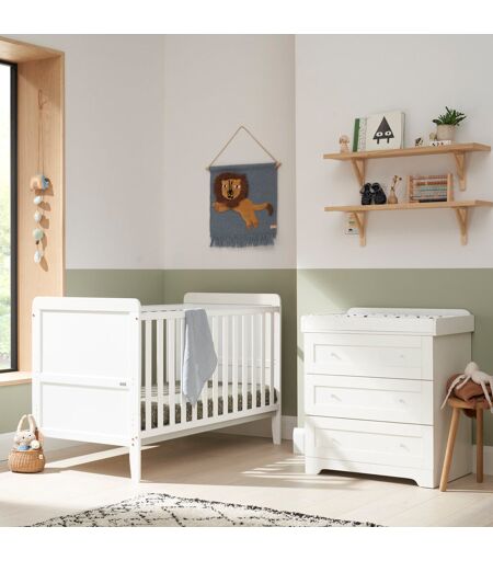 This nursery furniture set offers a contemporary look with plenty of storage in an affordable package. The set contains the following items – a cot bed, cot top changer, and chest changer. Tutti Bambini Colour: White ...