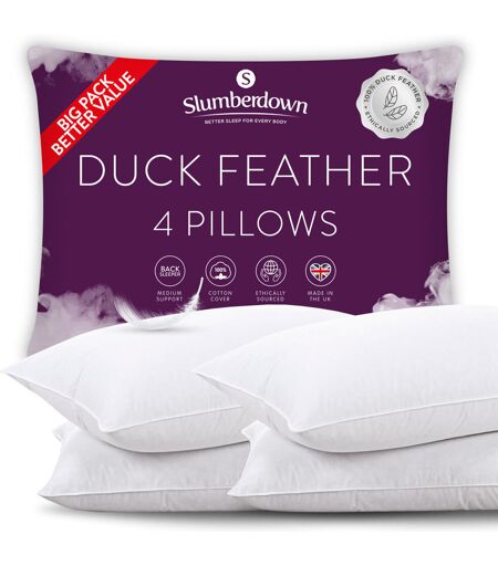 Slumberdown Duck Feather Pillow – Natural Fill, 100% Cotton Cover – Soft Yet Supportive Bed Pillow for Side & Back Sleepers – Hotel-Quality Comfort White