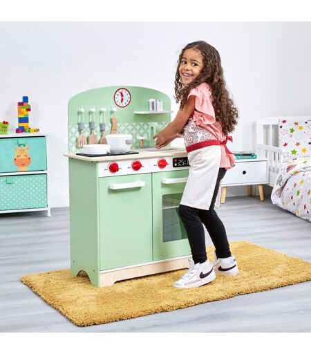 Liberty House Toys Kids Wooden Retro Play Kitchen Set Green 85cm H X 60cm W X 30cm D