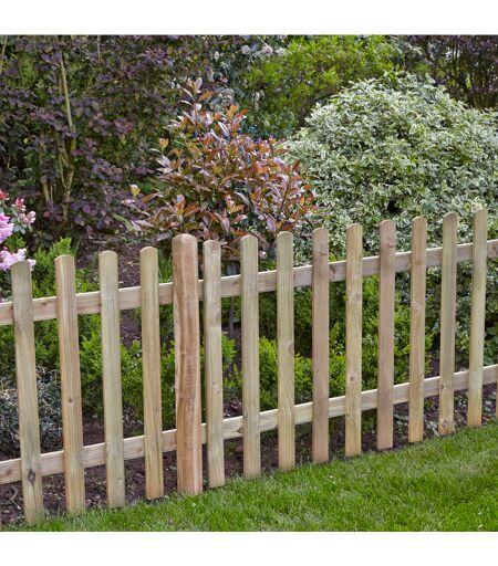 The 6' x 3' (1.8m x 0.9m) Picket Fence Panel is a traditional style of palisade fencing. It is perfect for creating a low-level boundary or partition, protecting flowers and foliage from being damaged. If you are using it for a property boundary a matching fence is available. Vertical Pales feature a decorative grooved profile and are secured to two grooved profile horizontal backing rails which are used to screw the end of each panel to the fence post. The timber is Dip Treated to give a 10-year Anti-Rot guarantee and a golden-brown finish.Available in 2 heights - 3ft (0.90m) and 4ft (1.20m). Forest Garden Set Of: Set of 5 ...